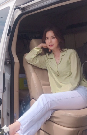 사진속에서 박시은은 내리쬐는 햇빛아래 하얀 밴 안에서 고즈넉하게 휴식을 취하고 있는 모습이 담겼다.