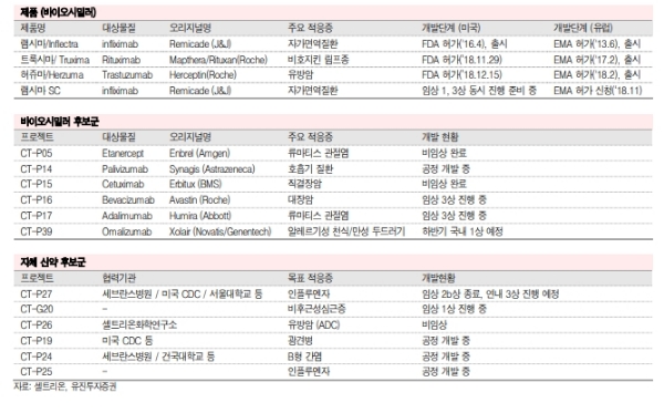 허혜민 키움증권 연구원도 “하반기 램시마SC의 유럽 승인, 트룩시마와 허쥬마의 미국 출시 등으로 단가인상의 효과가 기대된다”며 “2020년에는 허가승인과 추가 출시가 없기 때문에 램시마SC와 트룩시마·허쥬마의 미국판매 데이터가 중요할 것”이라고 말했다.
