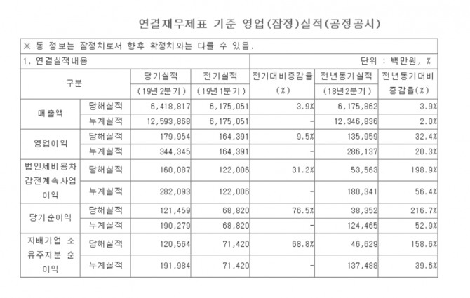 이번 실적은 사상 최대인 1분기 영업이익(1644억 원)을 뛰어넘었으며, 사상 최대 분기 영업이익이자 반기 영업이익을 기록했다. 또 6개 분기 연속 분기 매출 6조 원 이상의 실적을 거뒀다.