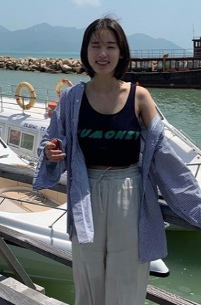 윙크하고 있는거야 누구에게 박환희... 한쪽 팔 드러난채 해안가 배경 인형 같은 모습 화제