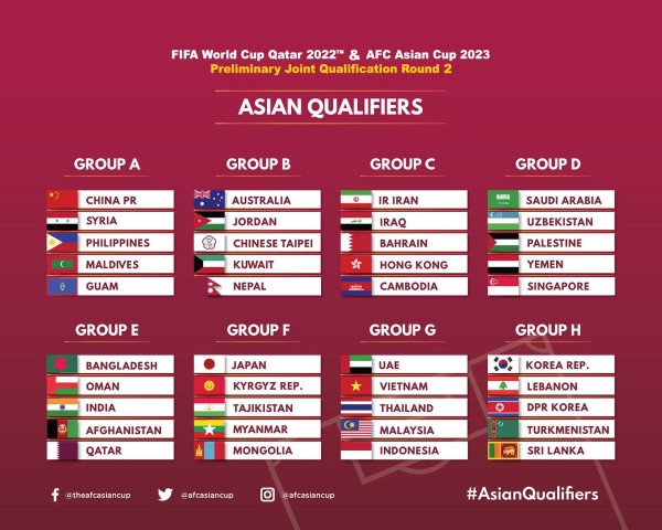 ◇ 2022년 카타르 월드컵 아시아지역 2차 예선 조 편성