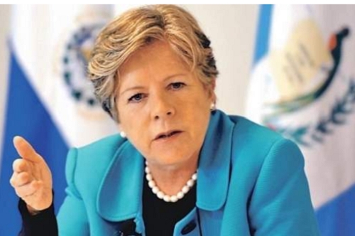 기자회견하는 알리시아 바케나 ECLAC 사무총장.