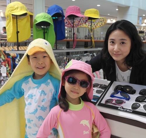이미지 확대보기9층에서 진행되는 이번 기획전에서는 호주 유아동 UV차단 전문 브랜드 베이비반즈의 수영복, 선글라스, 플랩햇 등 기능성제품을 비롯해 키즈 아웃도어 브랜드 썬글레이드의 네오프렌 소재 웜 베이비수트 등 다양한 유아동 기능성 제품을 만날 수 있다. 인기 아이템인 래시가드 투피스, 예쁜 바다생물이 새겨진 마린 투피스, 만 1세~4세까지 유아용 래시가드 원피스 등 다양한 상품이 준비돼 있다. 모자 패키지는 15~20%정도 할인판매하며, 수영복 패키지 구매고객에게는 물놀이에 좋은 메쉬가방을 증정한다.