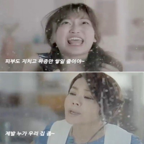 광고 속 김슬기는 "비가 또 오네. 빨래가 안 마른다고 이 새x야. 아 냄새 xx나네. 비 오지 말라고"라고 소리치며 분노했다.