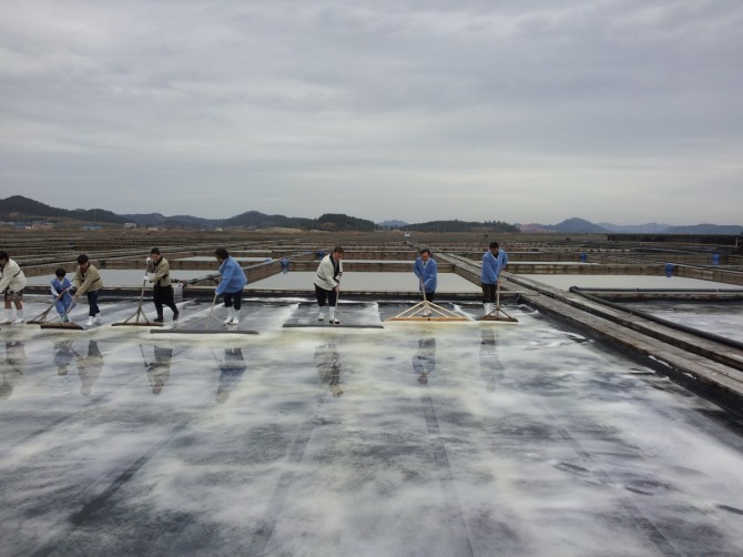 자염 생산 방법은 1차적으로 갯벌을 막아 바닷물을 채운 후 수 일 동안 태양열로 일정한 양을 증발시킨 후 염도가 높아진 남은 물을 육지로 운반하여 대형 가마솥에 담아서 소금결정체만 남을 때까지 불을 때는 것입니다. 이렇게 바닷물을 끓여서 만들었다고 자염이라 하고 불로 얻었다고 해서 화염이라고도 부른 것입니다. 하지만 이러한 자염은 며칠 동안 쉬지 않고 끓여내야 했기 때문에 연료비나 인건비가 많이 들어서 비쌀 수밖에 없었습니다.