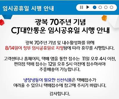 이미지 확대보기오늘 임시 공휴일을 맞아 택배회사도 휴업에 들어간다.