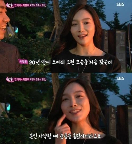 당시 두 사람의 결혼식에 참석한 이민영은 제작진과의 인터뷰에서 "20년만에 그런 모습은 처음 봤는데 혼인 서약할 때 안재욱 씨가 눈물을 흘렸다"며, "그 마음 변치 말고 행복하라"고 말했다.