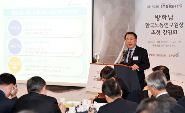 방 연구원장은 "최근의 산업구조와 노동시장 경쟁은 완전 다르기 때문에 더이상 효율적이지 않고 작동하지 않는 것"이라며 임금피크제 도입의 필요성을 강조했다.