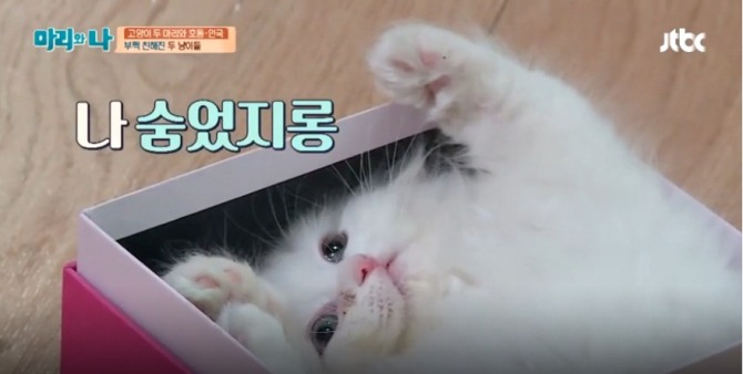 이미지 확대보기왕성한 활동력으로 이미 방안에 모든 장난감을 섭렵한 아기 고양이 먼지가 기존 장난감에 대한 흥미를 잃은것 처럼 보이자 서인국은 새로운 장난감 만들기에 돌입했다.