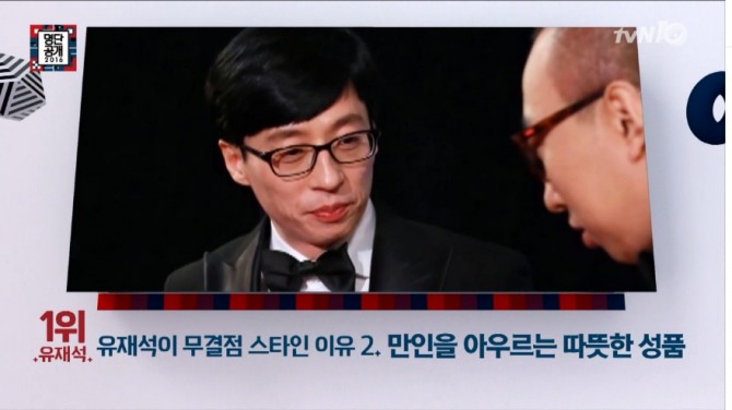 11일 밤 방송된 tvN '명단공개'에서 까도까도 끝없는 미담을 지닌 유재석이 '무결점의 후예! 연예계 미담의 끝판왕 스타들' 1위를 차지했다.