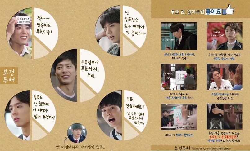 배우 박보검은 트위터에 "내일을 위한 오늘의 약속 소중한 한 표, 오늘 꼭 투표하세요"라는 글과 함께 투표 유의 사항을 소개하는 깨알 팁을 함께 남겼다.