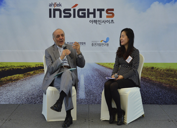 이미지 확대보기한국중견기업연합회(중견련)는 20일 올해 첫 번째로 개최한 '제163회 Ahpek INSIGHTS'에 하산 타헤리안(Hassan Taherian) 주한 이란 대사를 초청해 경제제재 해제 이후 초미의 유망시장으로 떠오른 이란 진출의 타당성을 점검하고 효과적인 시장 진출 전략 및 중견기업의 실질적인 경쟁력 제고 방안에 관해 논의했다.