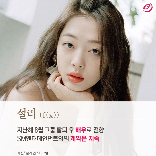 드라마 ‘서동요’로 데뷔한 설리는 지난해 f(x)를 탈퇴하고 배우로 전향했다. SM엔터테인먼트와의 계약은 지속하고 있다. 최근 영화 ‘리얼’을 촬영했다.