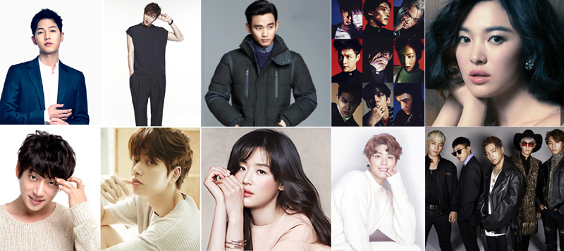 한류스타 10인에는 중국에서 드라마 '태양의후예' 열풍이 불면서 주인공으로 열연한 송중기, 송혜교와 가요프로그램, 드라마에서 활발한 활동을 하고 있는 황치열, 박해진, 박보검이 올해 처음 한류스타 10인에 포함됐다. K-POP을 주도하는 엑소와 빅뱅, 지난해에 이어 한류스타 10인에 이름을 올리고 있는 김수현, 이민호, 전지현도 선정됐다.