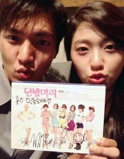 공개된 사진 속 이민호와 설현은 'to 민호오빠'라는 사인이 쓰인 AOA의 앨범을 함께 든 채 입술을 앞으로 모으고 있다.