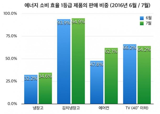 김치냉장고의 경우 이미 판매되는 거의 모든 제품들이 1등급 제품으로 판매량에 영향이 없는 상태다. 일반냉장고는 1등급 제품이 많지 않아 판매량 상승에 의미를 두기 어렵다.