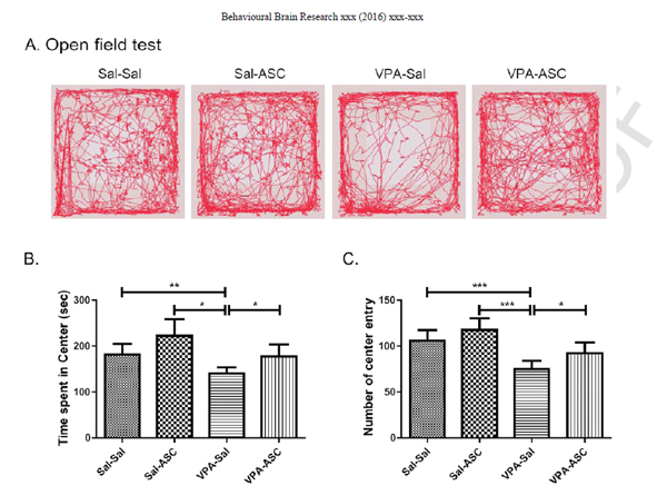 지방줄기세포 투여 후 3주부터 자폐증 특이적인 행동양식의 변화 및 병리학적, 분자 생물학적 변화를 관찰하였다. 그 결과 자폐증 모델에서 증가되는 반복행동의 빈도와 지속시간이 지방줄기세포 투여에 의해 유의하게 감소했고 사회성 감소와 불안을 의미있게 개선시키는 것도 확인했다고 바이오스타는 설명했다.