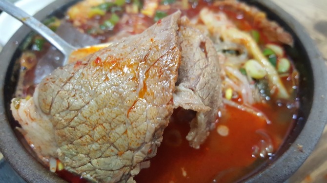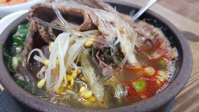 일반적으로 갈비탕이나 곰탕에서 종종 당면을 보지만 해장국에 들어가 있는 당면은 제주도에 와서 처음 보게 되었다. 그런데 생각보다 매력이 있는 듯하다.