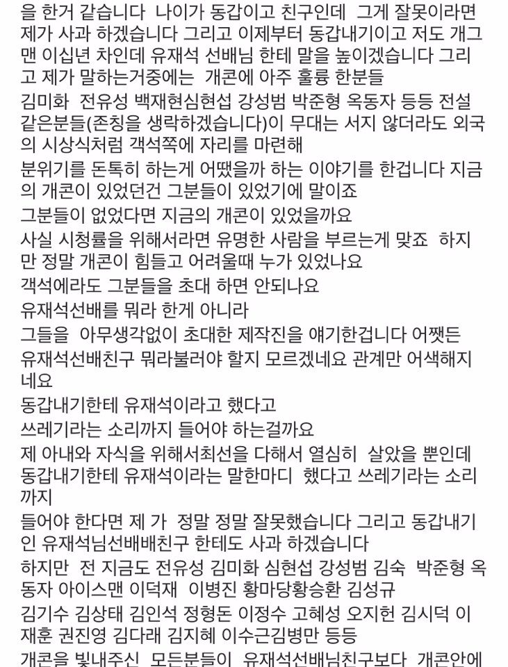해당 게시글에는 400건이 넘는 댓글이 달리며 “옥동자·임혁필이 맞는 말 했다”, “유재석도 KBS공채 출신인데 왜 아무상관 없냐” 등 누리꾼들의 갑론을박이 벌어졌다.