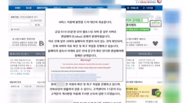 웹호스팅 업체 서버가 랜섬웨어 공격을 받은 것은 국내에서는 이번이 처음이다.