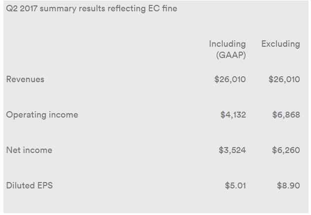 In order to facilitate comparison of current quarter performance to prior periods, this summary table highlights the impact of the $2.7 billion European Commission (EC) fine, which was accrued in Q2 2017: