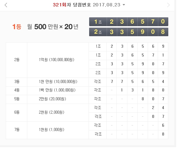 3등은 각조 775654번으로 당첨금 1000만원을 지급받는다.