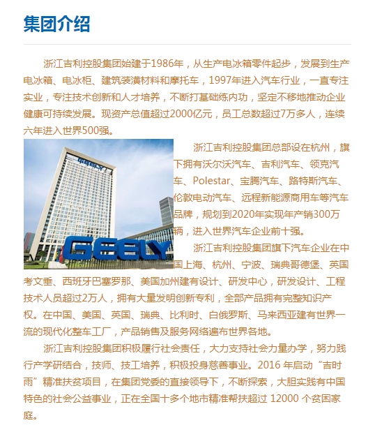 Geely Auto Group is a leading automobile manufacturer based in Hangzhou, China and was founded in 1997 as a subsidiary of Zhejiang Geely Holding Group. Geely Auto Group sells vehicles under the Geely Auto brand and holds a 50% stake in the LYNK & CO brand.