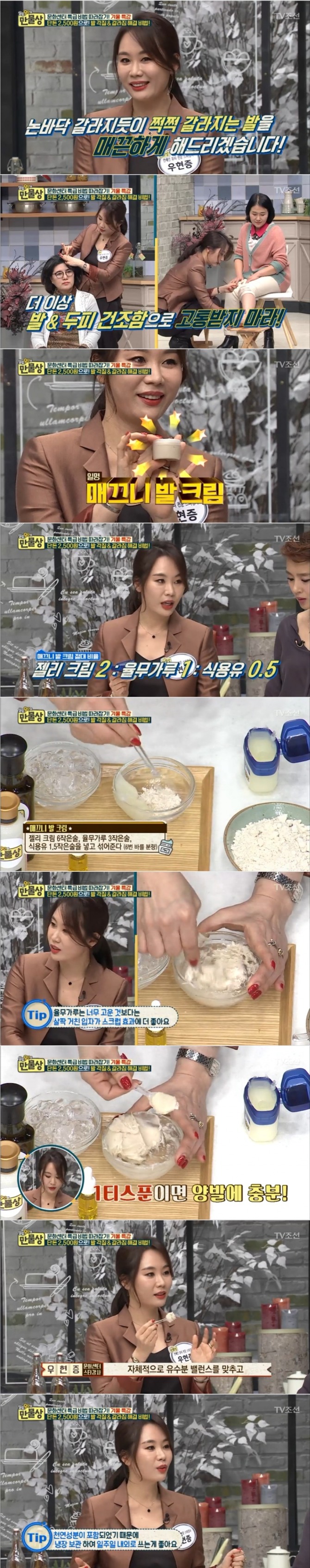 이미지 확대보기지난 18일 밤 방송된 TV조선 '살림9단의 만물상'에서는 우현증 뷰티강사가 출연, 율무가루를 이용한 헤어팩과 발크림 만드는 비법을 공개해 화제를 모았다.