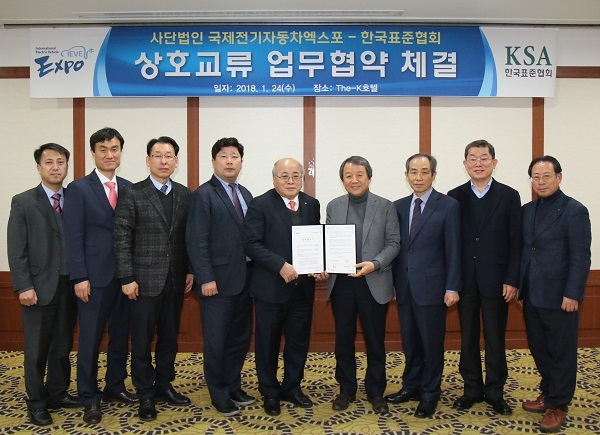 이미지 확대보기한국표준협회가 24일 더케이호텔에서 사단법인 국제전기자동차엑스포와 4차 산업혁명 대응 및 상호 관련 분야의 사업 활성화를 위한 업무협약(MOU)을 체결했다.