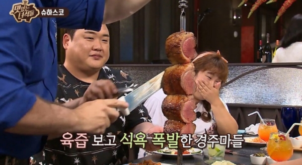 맛있는 녀석들이 찾아간 슈하스코 맛집은 강남에 위치한 무한리필집이다. 고속터미널역 3번 출구 앞에 위치한 ‘텍사스 데 브라질’이 그 주인공으로 이미 많은 방송에서 소개된 바 있어 유명한 맛집이다.