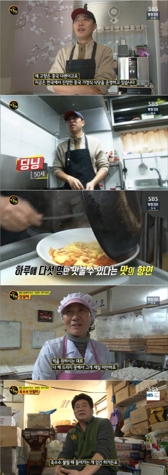지난 5일 방송된 SBS '생활의 달인' 611회에서는 평창 올림픽 특집으로 중국가정삭 달인 딩닝과 강릉 인절미빵, 강릉 찹쌀떡, 평창 옥수수인절미, 삼척 꽈배기와 도넛 달이이 소개돼 화제를 모았다. 사진=SBS 방송 캡처이미지 확대보기