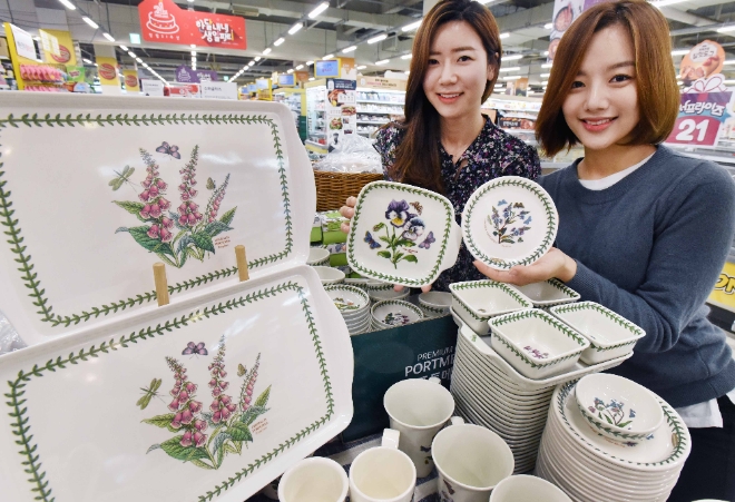 홈플러스는 28일까지 병행수입을 통해 포트메리온 제품 40여 종을 개당 9900원 또는 1만4900원 균일가에 판매한다. 화려한 꽃이 그려진 '보타닉가든' 시리즈 대접, 공기, 파스타볼, 머그 등을 개 또는 세트당 1만4900원, 소용량 식기, 레미킨, 미니 국자, 타올, 허브 스파이시 자, 오븐 글로버 등 소품류는 개당 9900원에 마련했다. 포트메리온 악센트볼 5P 세트는 2만9900원에 준비했다.