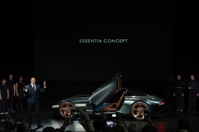 이미지 확대보기에센시아 콘셉트는 제네시스가 처음 선보이는 전기차 기반의 그란 투리스모(Gran Turismo, 장거리 운전에 적합한 고성능 자동차) 콘셉트 자동차로, 제네시스에 적용될 미래 기술력을 보여준다.