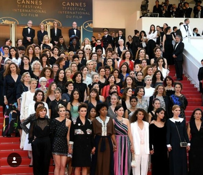 프랑스 칸 영화제에서 여성 영화인들이 영화계의 성 평등을 요구하는 시위를 벌였다.