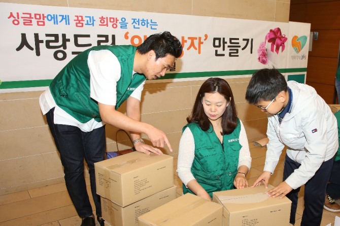 DB손해보험은 5월 가정의 달을 맞아 본점 및 전국 지점 약 2400여 명의 임직원이 참여하는 가운데 전국 80개 사업장에서 미혼모·싱글맘을 위한 사랑드림'약속상자' 만들기 봉사활동을 펼친다.
