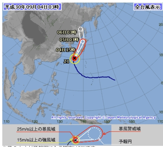 台風第21号 (チェービー) 平成30年09月04日03時45分 発表