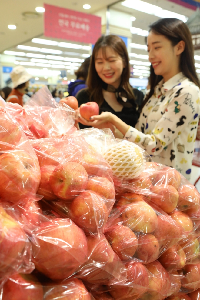 롯데마트는 모든 점포에서 오는 19일까지 B급 상품의 소비 촉진을 위해 B급 사과, 배 250톤을 저렴하게 판매하는 행사를 진행한다. 장수, 충주 등에서 수확한 ‘사과B+(5-12入/1봉)’를 7900원에, 천안, 상주 등에서 수확한 ‘배 B+(4-6入/1봉)’를 9900원에 판매한다.
