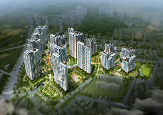 GS건설이 비규제지역인 경기 의정부에 공급하는 첫 자이 브랜드아파트 '탑석센트럴자이'가 최고 경쟁률 144.6대1을 기록하며 전평형 1순위 마감했다. 위 사진은 탑석센트럴자이 조감도. 사진=GS건설이미지 확대보기