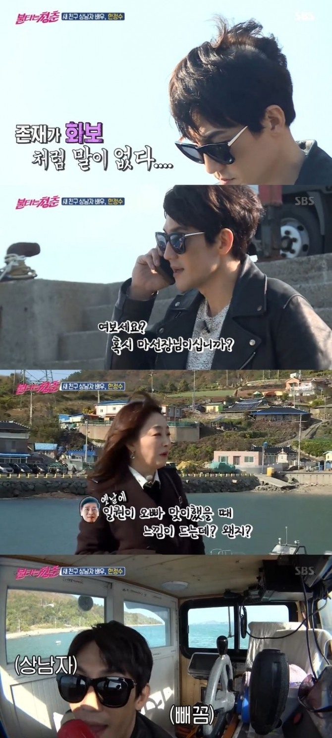 이미지 확대보기20일 밤 방송된 SBS '불타는 청춘'(이하 '불청')에서는 새 친구로 연기자 한정수가 불청 친구들을 찾아왔다.