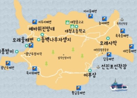 유명한 백령도를 이웃으로 두고 있어 매일 백령도로 오가는 배들이 대청도를 모두 경유해 지나간다.