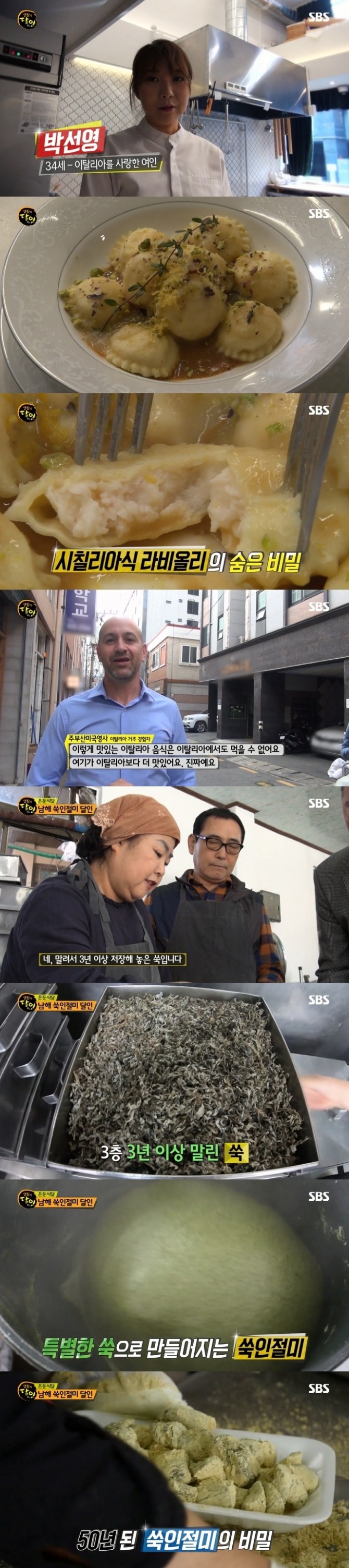 지난 19일 방송된 SBS '생활의 달인' 646회에서는 '은둔식달'로 남해 쑥인절미 달인 강양자(여·62), 한영남(남·67) 부부, 인생 파스타 청년 달인으로 시칠리아식 라비올리 전문 박선영(여·34) 씨, 만물상 달인으로 최백식(남·59) 씨를 소개했다.