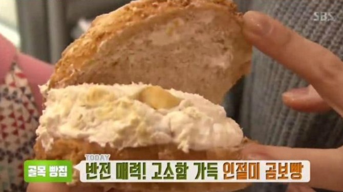 이미지 확대보기29일 SBS 생방송 투데이의 골목 빵집 코너 소개된 인절미 곰보빵이 시청자들의 눈길을 사로잡았다. 인절미 곰보빵은 경기 안양시 동안구 학의로에 위치한 '김용학 베이커리'에서 판매 중인 빵으로 나타났다.
