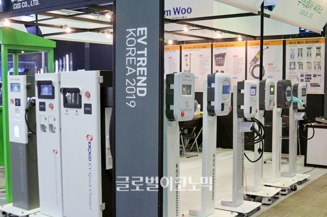 이미지 확대보기 (위부터)전기차 충전기 전문제작업체 씨어스와 파워뱅크는 다양한 완속, 급속 충전기를 전시한다.