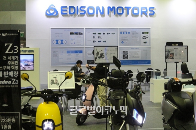 이미지 확대보기 (위부터)에디슨 모터스는 이륜전기차와 전기버스를, 엠비아이는 이륜전기차를 각각 선보였다.