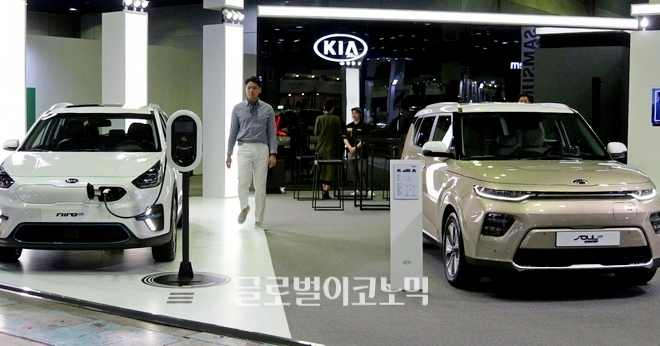 이미지 확대보기 (위부터)현대차는 전기차 아이오닉과 코나, 수소전기차 넥쏘 등을, 기아차는 전기차 니로와 쏘울 등을 각각 전시한다.