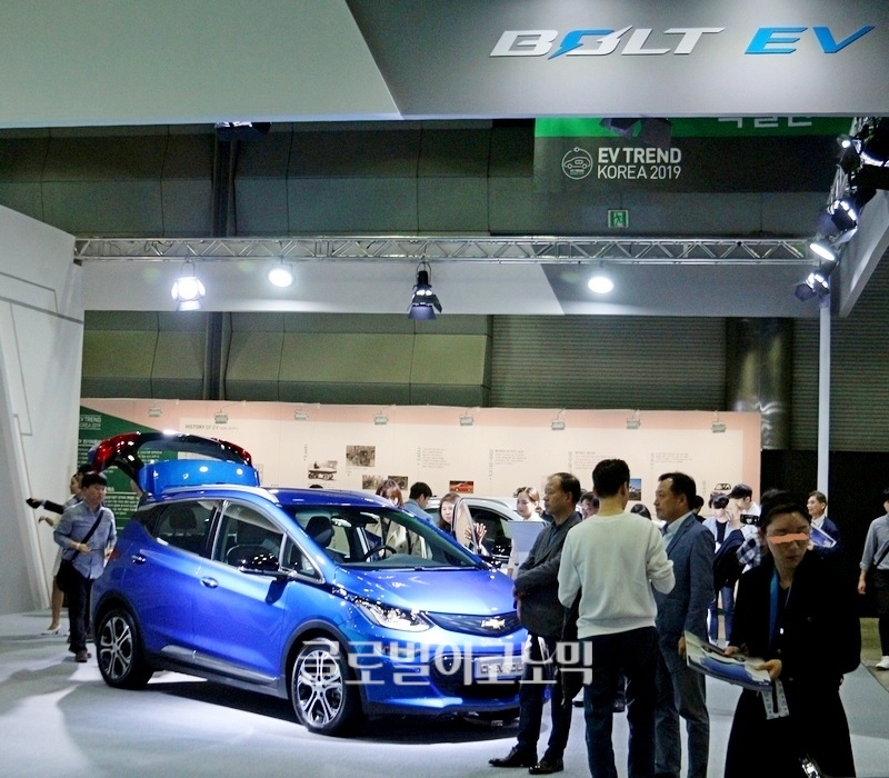 이미지 확대보기 한국GM의 대중브랜드 쉐보레는 전기차 볼트를 전시한다.