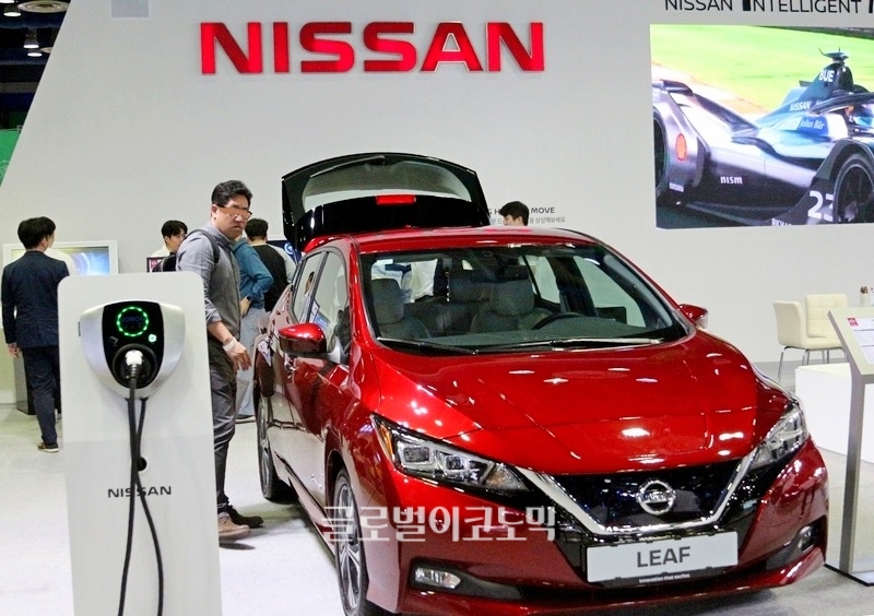 이미지 확대보기 일본 닛산도 자사의 인기 전기차 리프 2대를 선보인다.