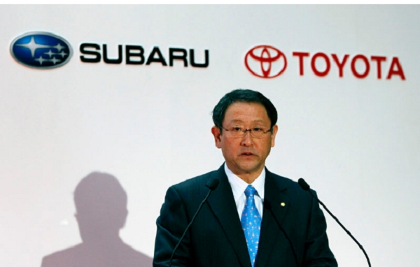 도요타와 스바루는 지난 6일 SUV 전기차를 공동개발한다고 발표했다. 사진은 도요다 아키오(豊田章男) 도요타자동차 사장이 기자회견 하는 모습.