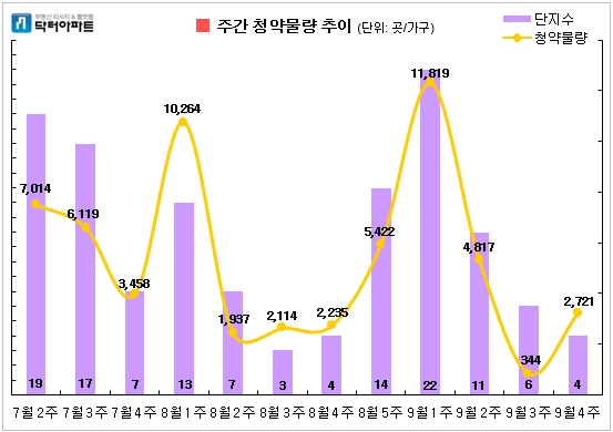 9월 마지막이자 넷째 주(9월 23~28일)에 청약접수 단지는 4곳으로 ▲래미안 라클래시 ▲평택 지제역 더샵 센트럴시티 ▲통영안정(국민임대·영구임대) 등이 24일(화) 하루에 일제히 몰려있다.