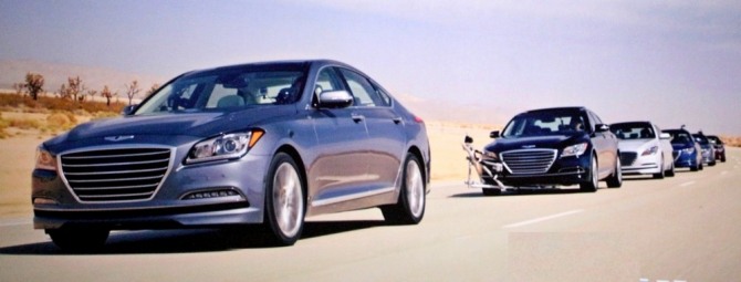 정의선 수석부회장이 미래 먹거리로 부상한 자율주행자동차 상용화를 앞당기고 전기자동차 라인업을 늘린다. 제네시스 미국 자율주행 시험 장면. 사진=정수남 기자
